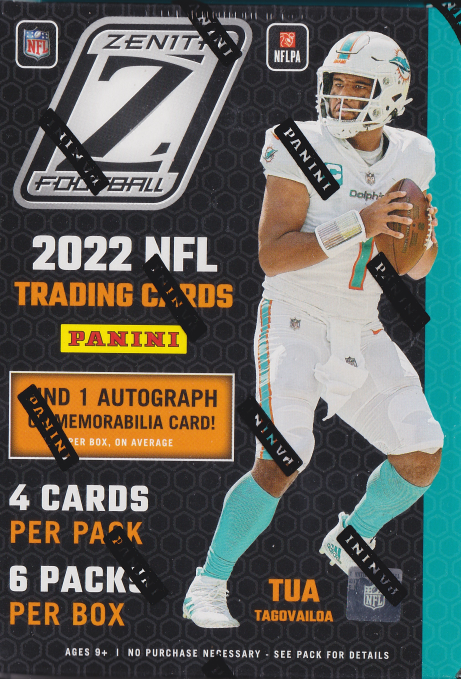 Panini 2022 Zenith Football Blaster Box - 6 Packs 1 Auto or Memorabilia Card.